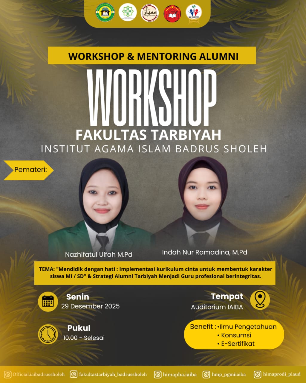 Kediri, 29 Desember 2025 — Fakultas Tarbiyah Institut Agama Islam (IAI) Badrus Sholeh menyelenggarakan kegiatan Workshop Pendidikan dan Mentoring Alumni yang berlangsung di Auditorium Badrus Sholeh, Senin (29/12). Kegiatan ini mengusung dua agenda utama, yaitu workshop dengan tema “Mendidik dengan Hati: Implementasi Kurikulum Cinta untuk Membentuk Karakter Siswa MI/SD” serta sesi mentoring alumni bertajuk “Strategi...Read More